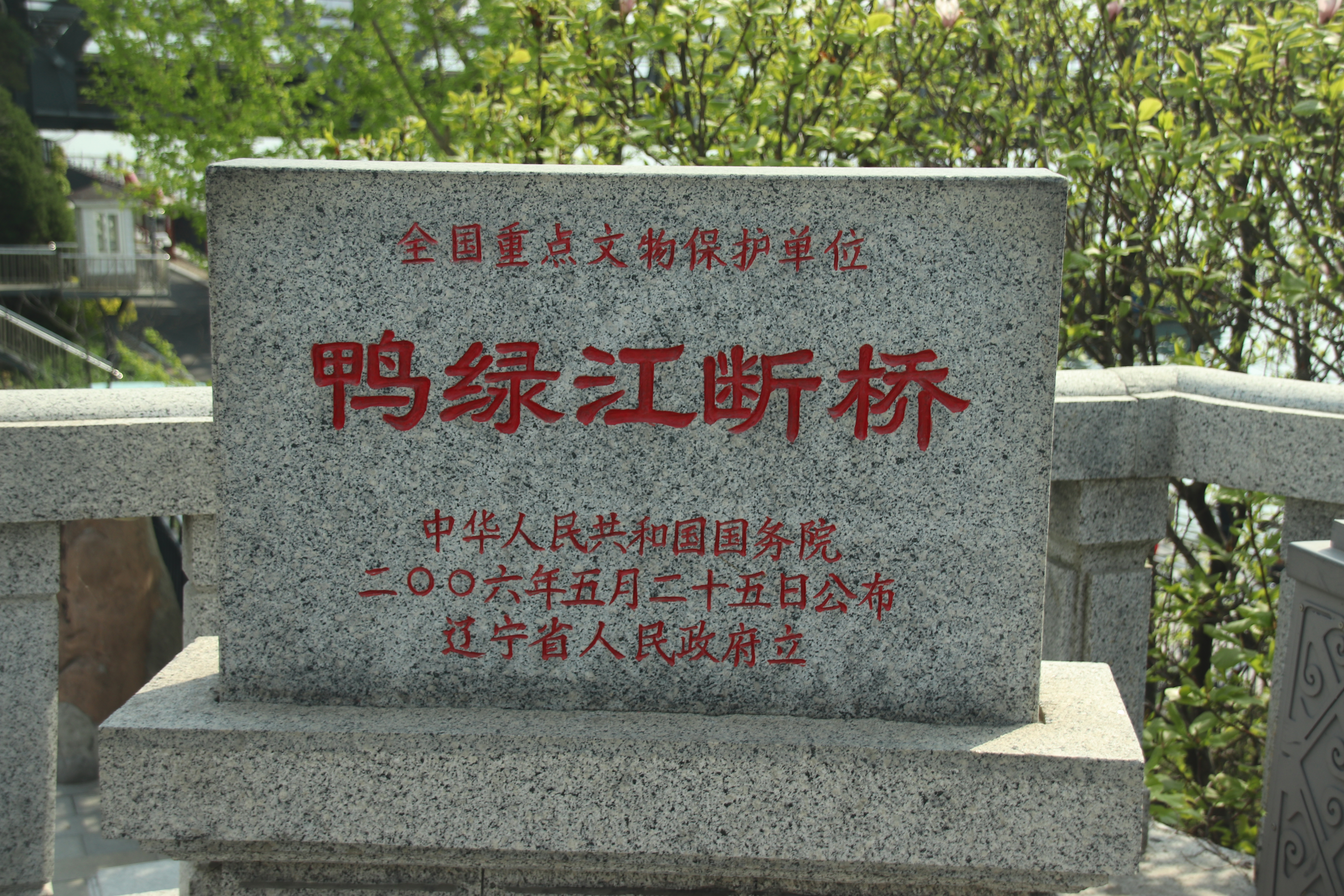 한반도와 중국을 이어 주던 다리다. 1911년 일본이 대륙 침략을 목적으로 압록강 하류에 건설했다. 6 · 25 전쟁 때 미국이 중국의 전쟁 개입을 막기 위해서 절반을 파괴하여, 현재 중국 쪽 절반만 다리가 남아 있다. 파괴된 북한 쪽 다리는 교각만 덩그러니 수면에 드러나 있다. 끊어진 다리라는 뜻에서 ‘단교(断桥)’라고 부른다.