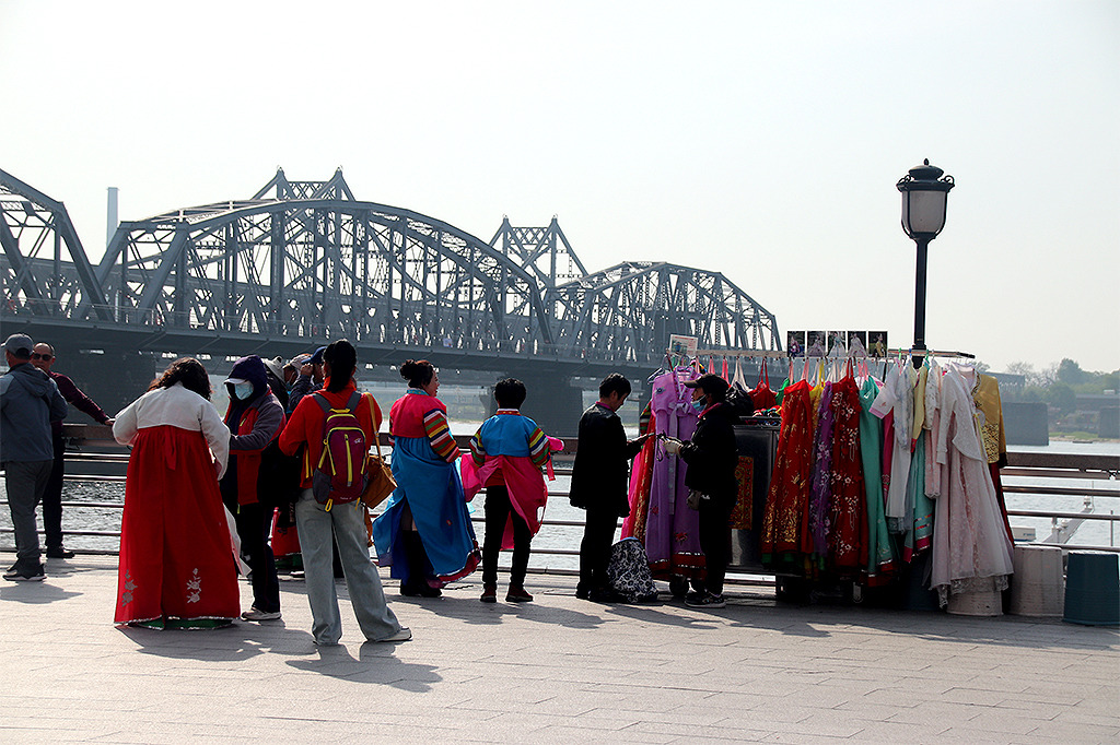 다음날 아침식사 후 다시 찾은 단교에는 여인들이 북한 옷을 빌려 입고 있는 모습을 볼 수 있는데 조금은 조잡한 느낌입니다..