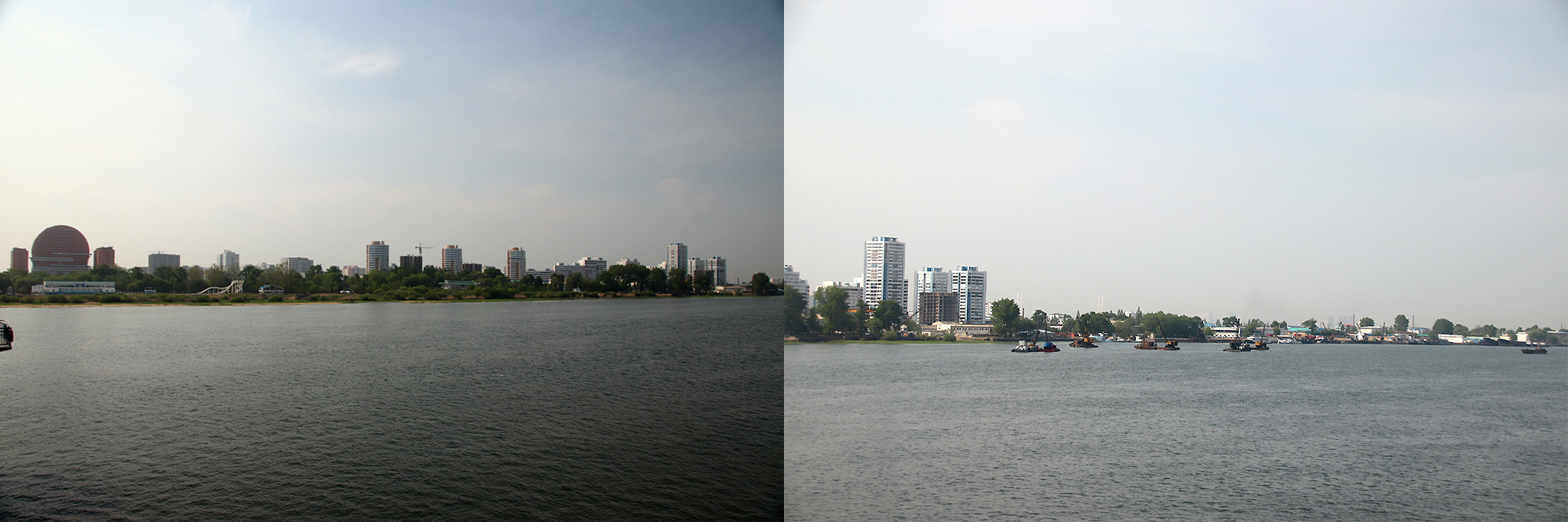 단교에서 본 신의주 모습으로 신의주에도 제법 큰 건물들이 보입니다..