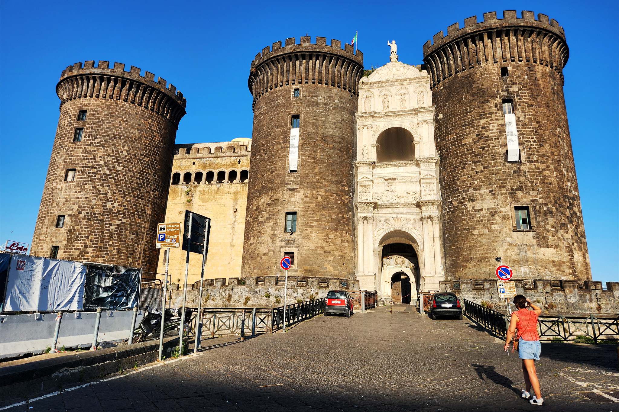 숙소에서 도보로 약 40분 거리에 있는 카스텔 누오브 성을 처음 방문지로 선정 걸어가면서 나폴리를 느껴보았다. 요한 볼프강 폰 괴테가 그의 여행 일기 이탈리아 여행에서 인용한 나폴리를 보고 죽어라!("나풀레 에 포 무어를 보세요!")라는 나폴리의 비할 데 없는 아름다움을 보고 나면 평화롭게 죽을 수 있다는 유명한 구절을 생각하고 아름다운 나폴리를 상상했는데 실망이었다. 도시가 오래되어서 그런지 지저분한 외관과 길거리 여기저기 굴러다니는 엄청난 쓰레기 등에서 풍기는 나폴리의 첫인상은 실망 그 자체였다. 물론 내가 본 것이 나폴리의 전부는 아니겠지만..