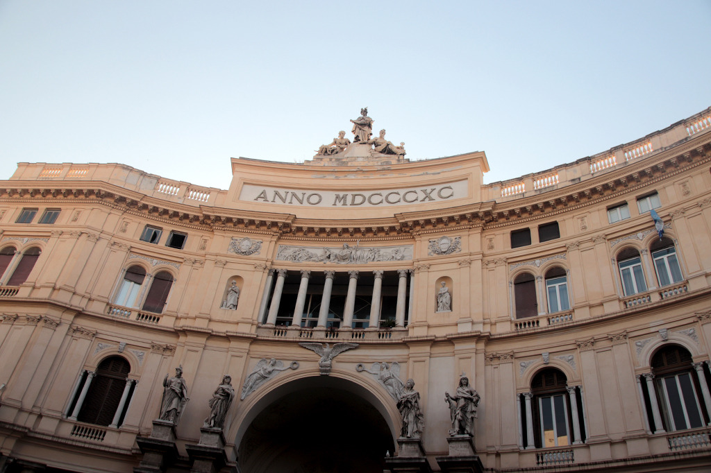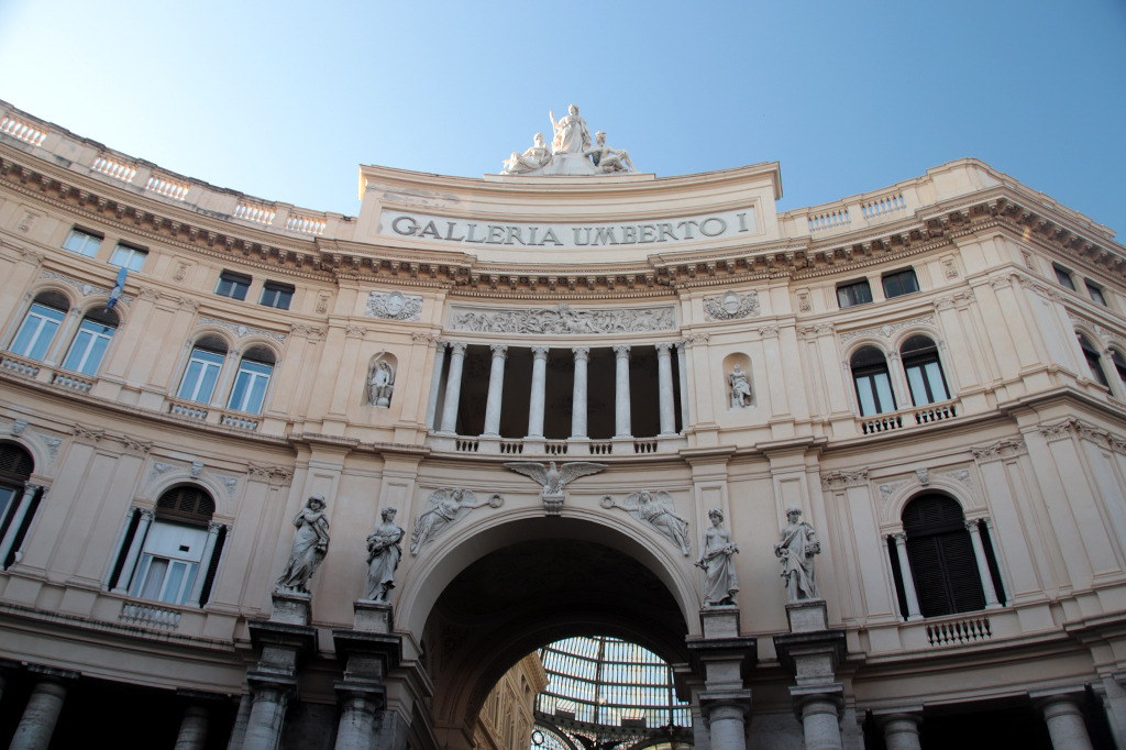 유리와 철제로 지붕을 덮은 커다란 회랑 쇼핑센터인 움베르토 1세 갤러리..
