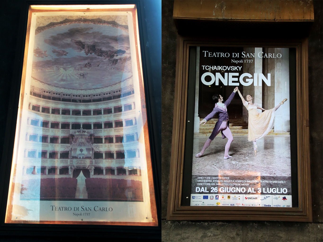산 카를로 극장 내부 모습과 오페라공연 포스터..