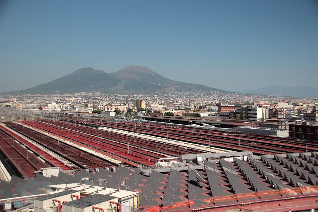 숙소에서 본 나폴리역과 멀리 여인의 젖무덤 같은 폼페이를 집어삼킨 베수비오 화산이 보이고..