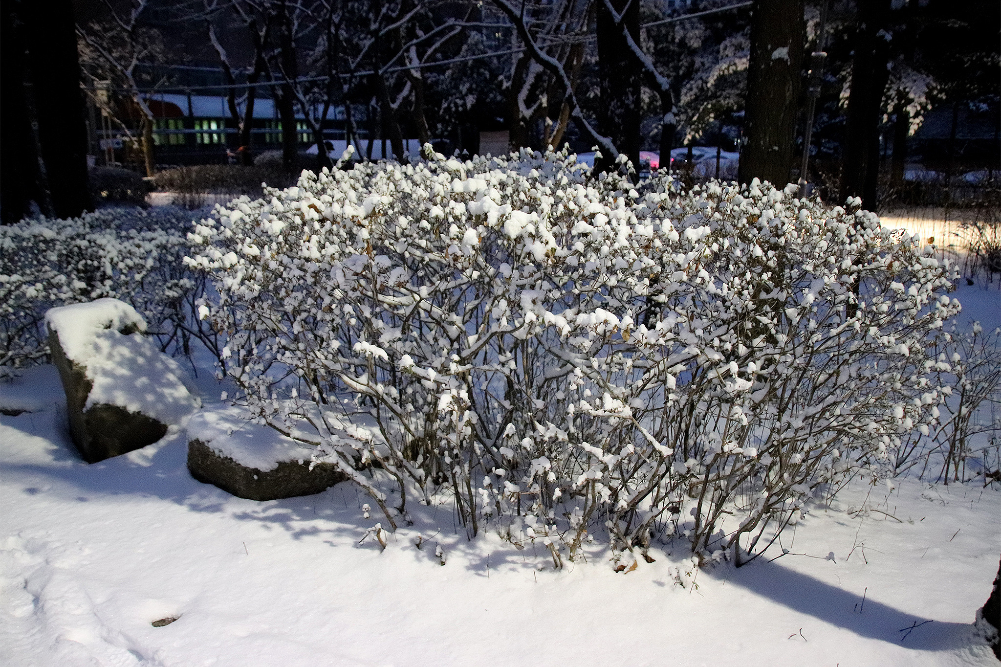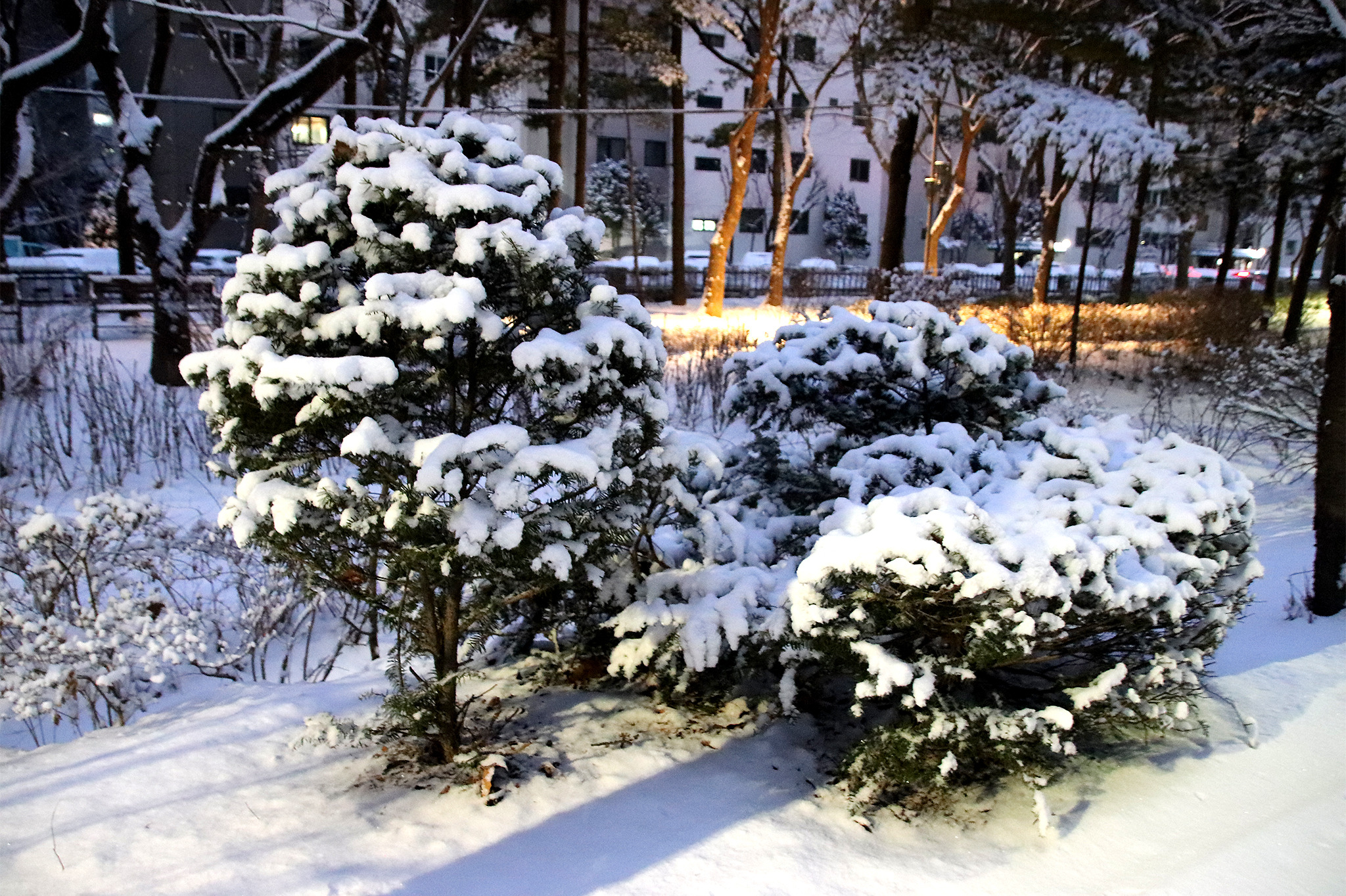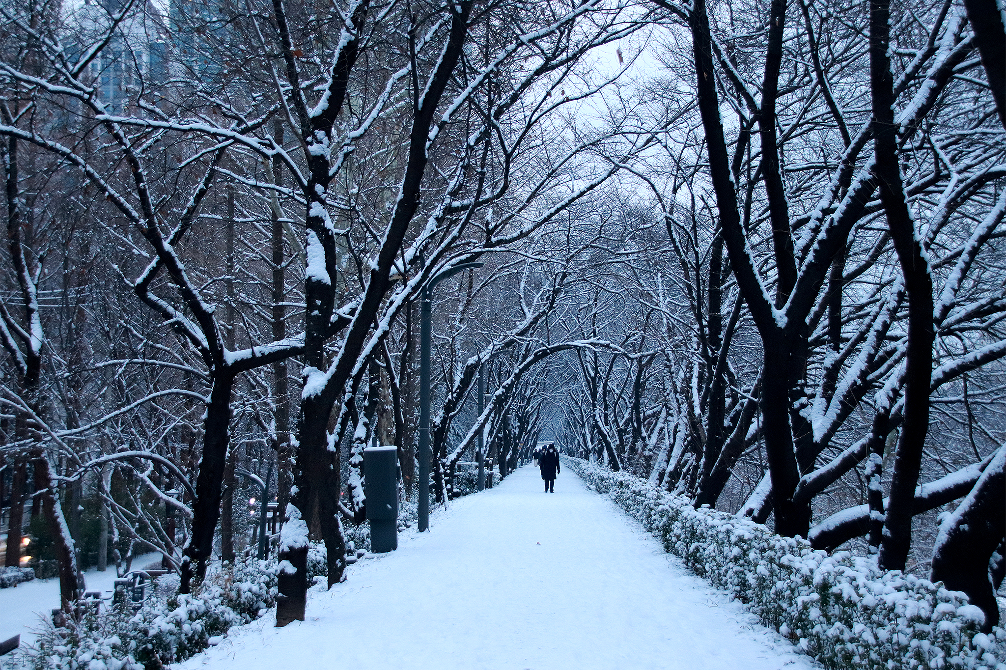 이쪽은 길을 통제하여 눈을 밟고 지나 간 흔적이 없습니다..