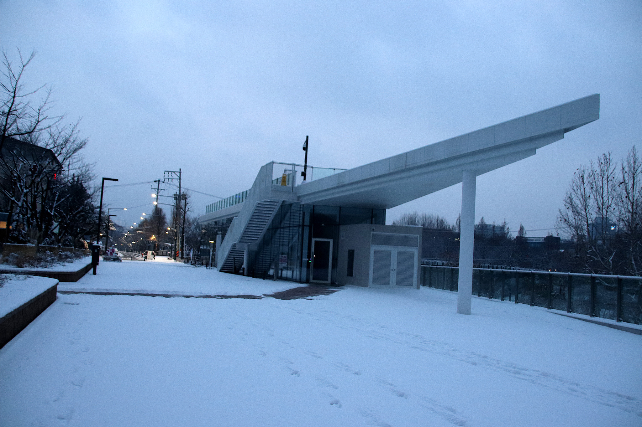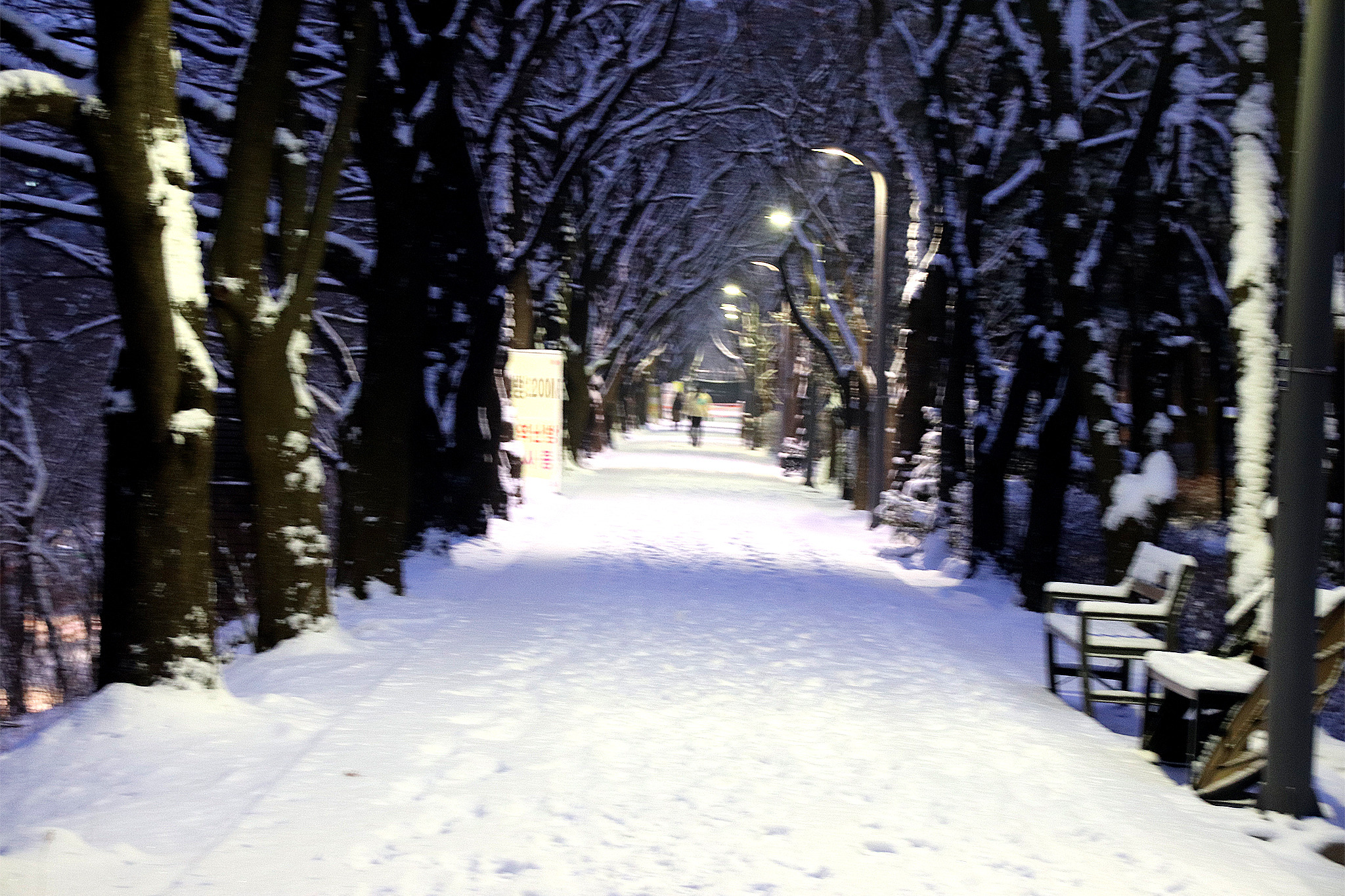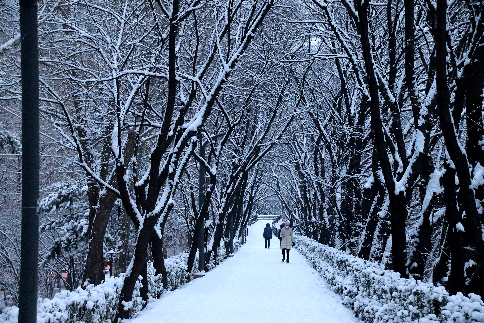 이쪽은 길을 통제하여 눈을 밟고 지나 간 흔적이 없습니다..