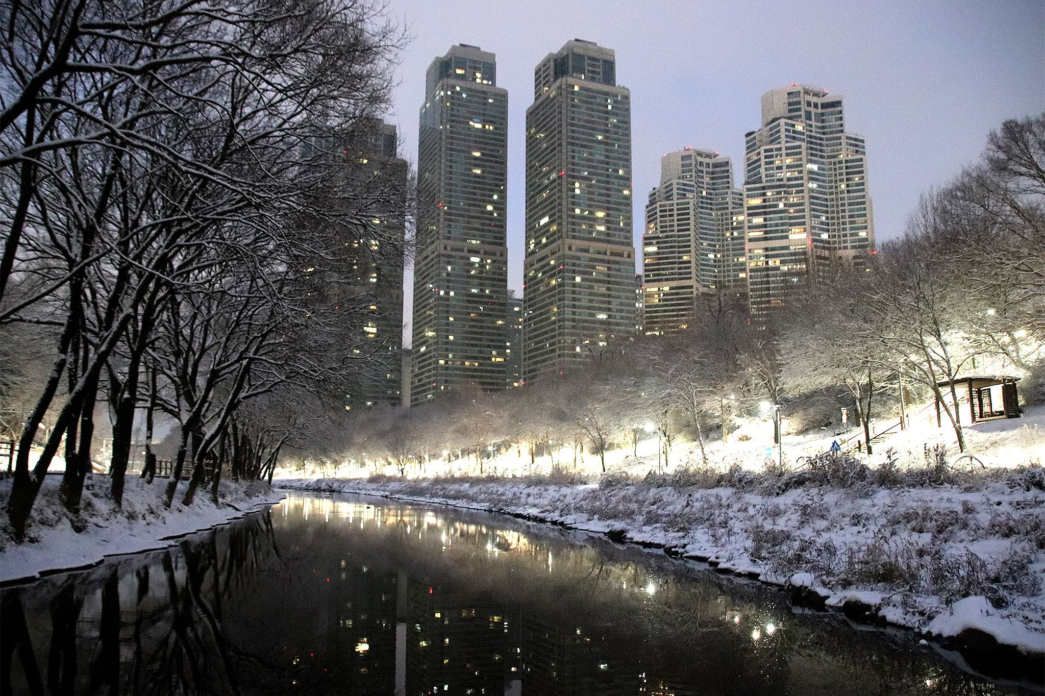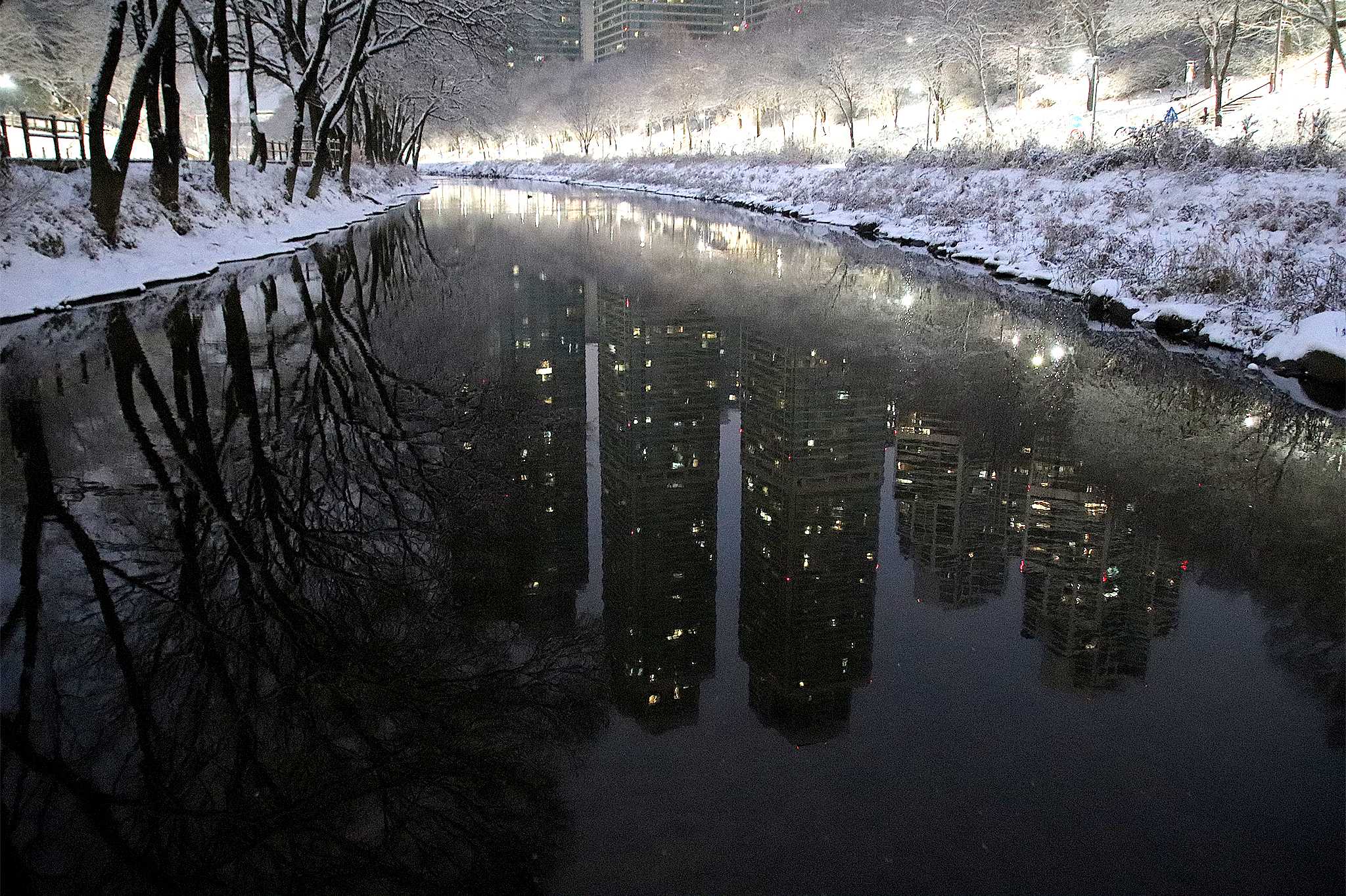 서울에 모처럼 눈이 내려 이른 아침 양재천의 설경을 담아봅니다..