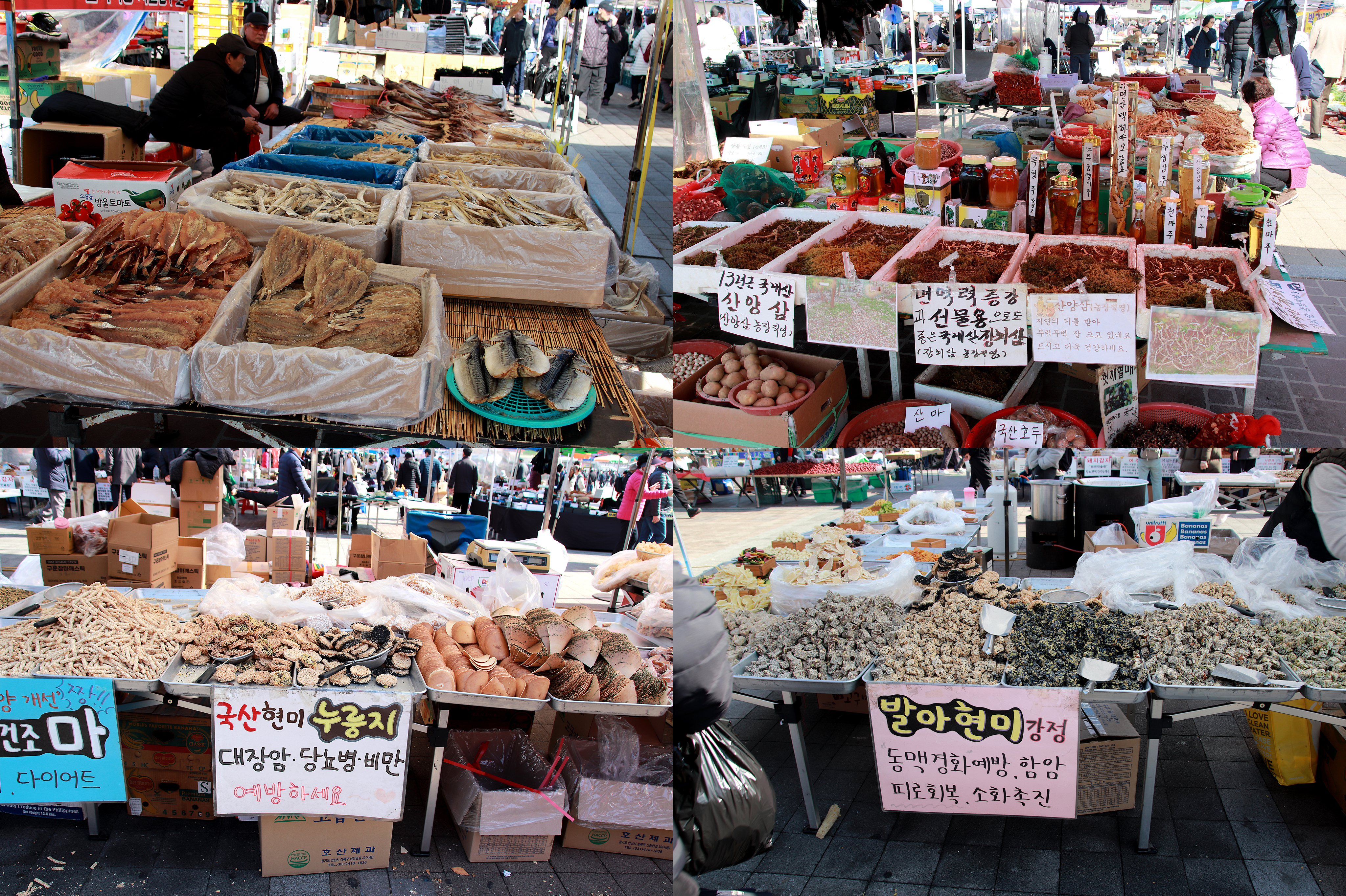 반 건조 건어물, 산양삼, 강정 등을 팔고 있고..