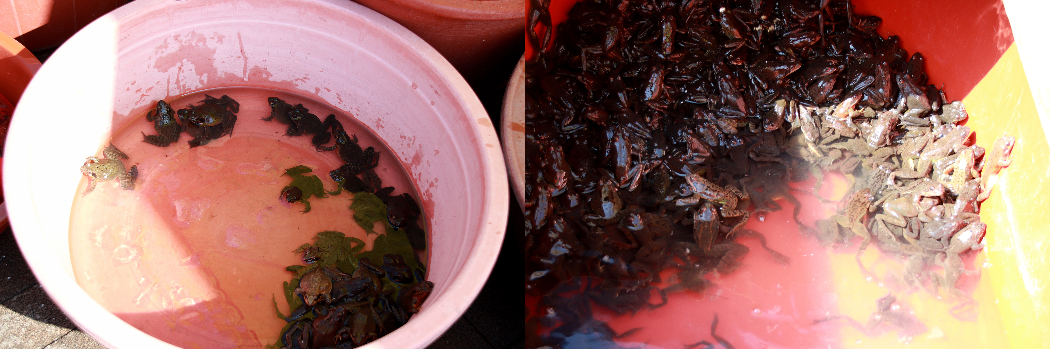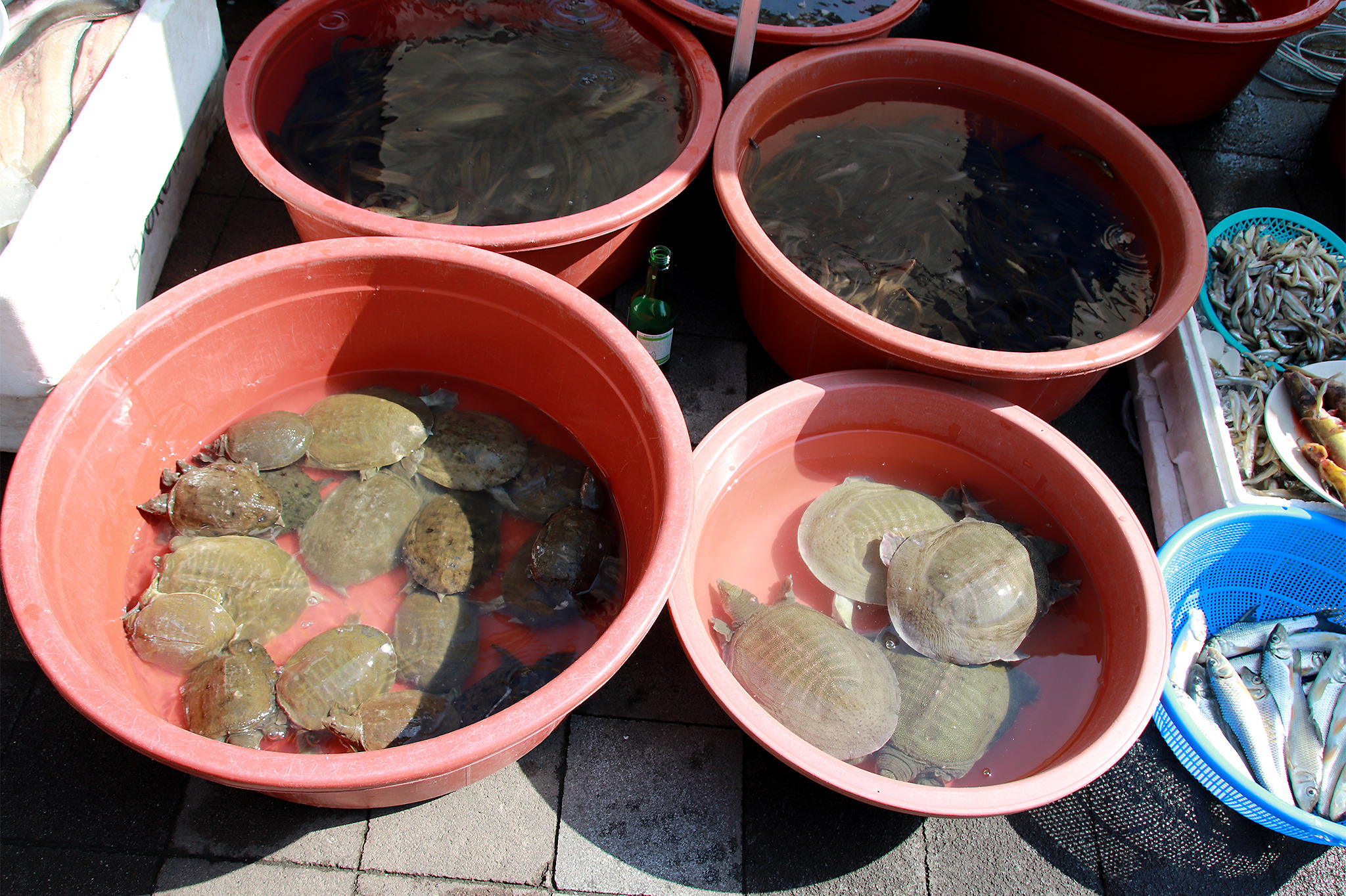 개구리, 자라 등을 팔고 있는 곳..