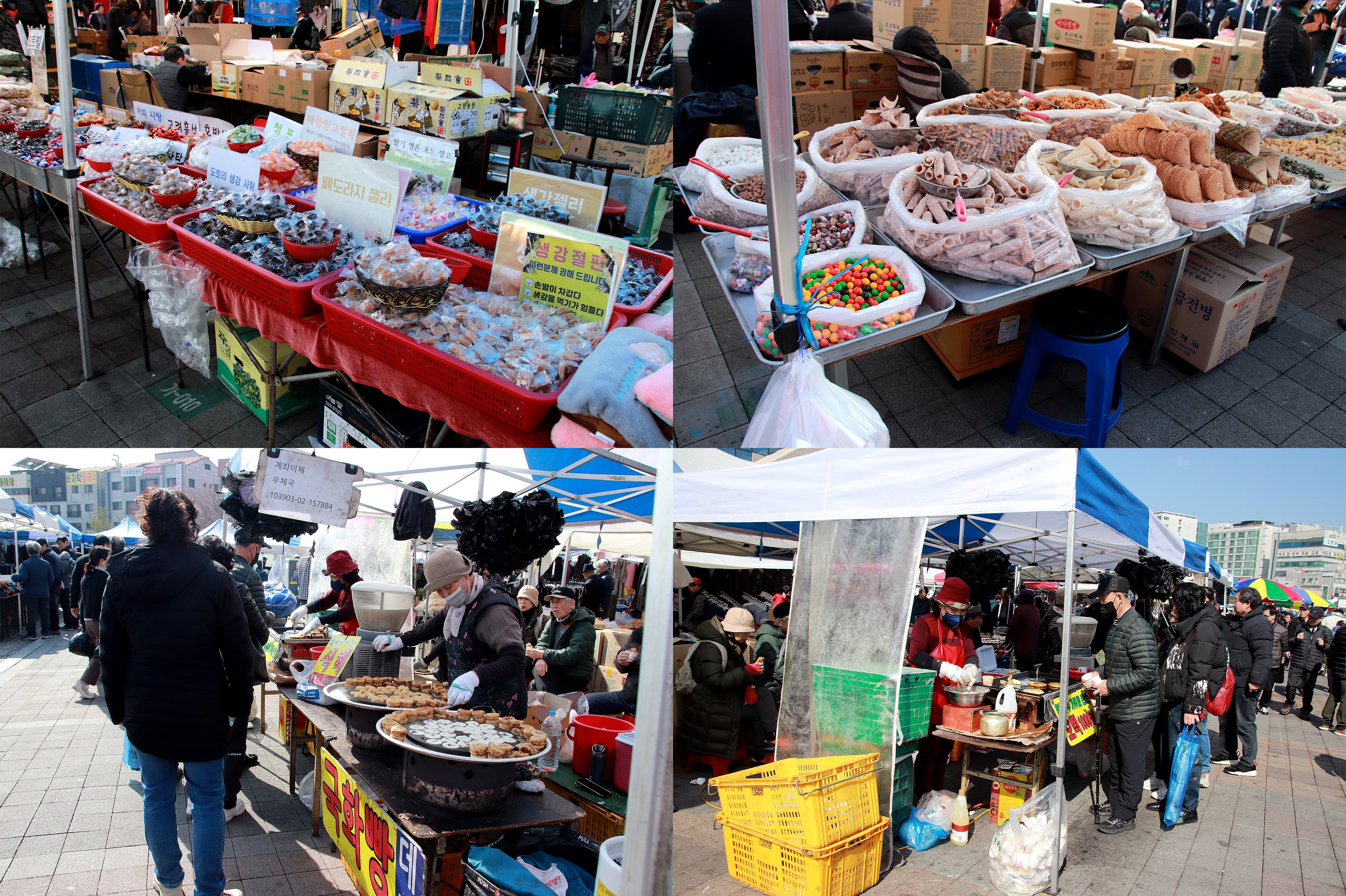사탕, 젤리, 절편과 옛날과자(위) / 아래는 국화빵과 호떡(1개 천원)을 팔고 있습니다..
