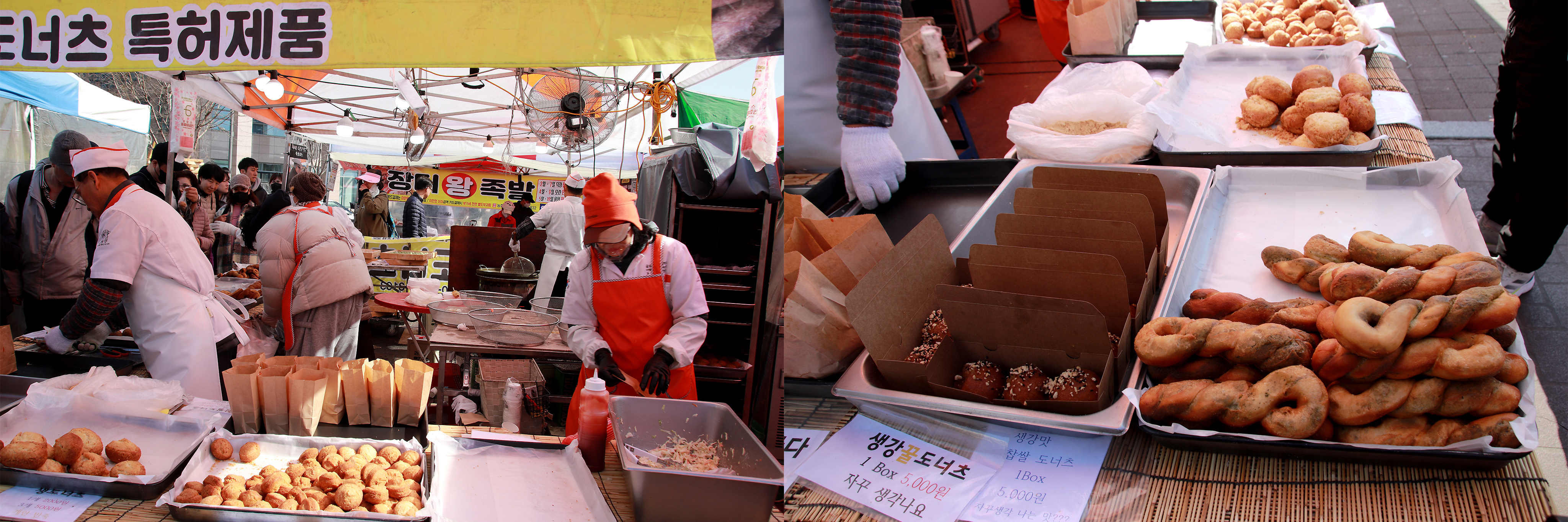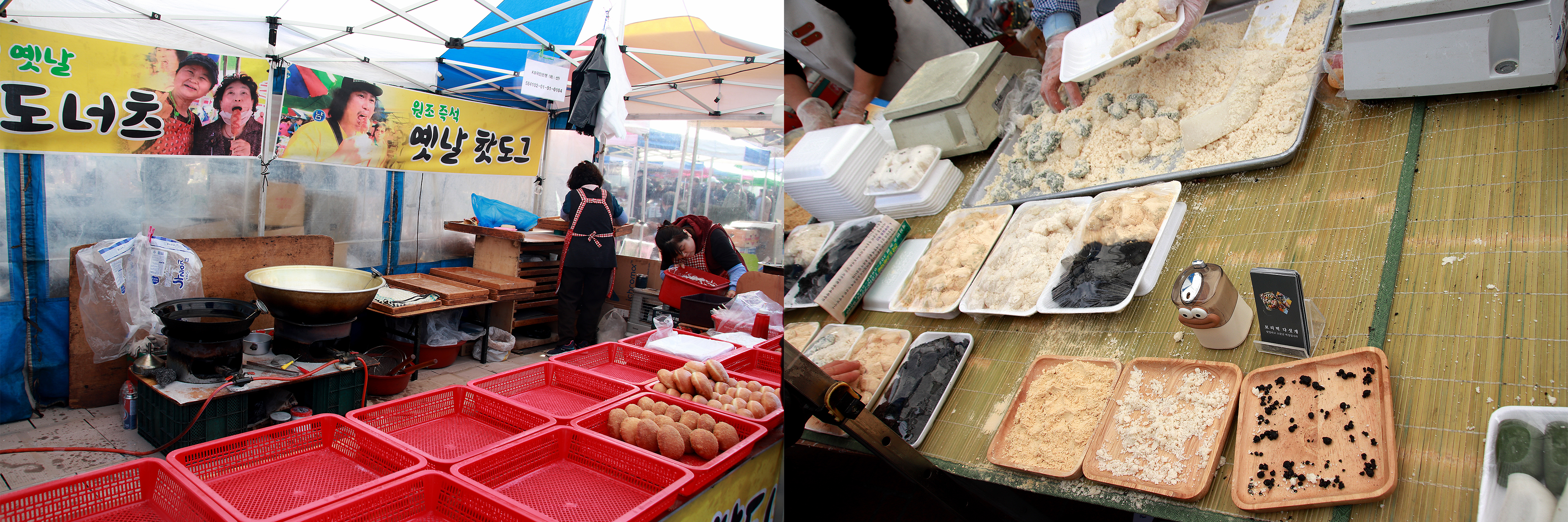 도너츠 가게와 떡집은 오늘 물량을 거의 다 팔은 것 같습니다..