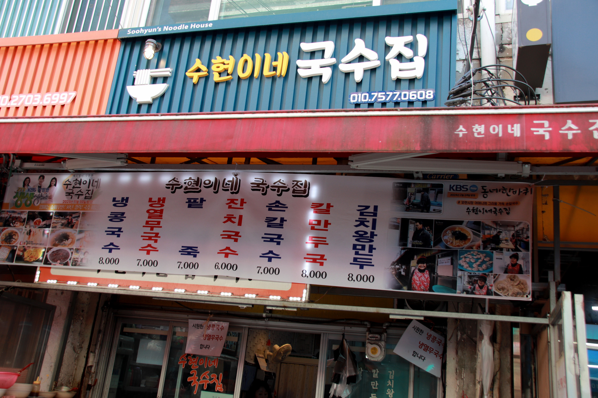 기름골목에 있는 수현이네 국수집으로 5일 장날 장터에 있는 수현이네 국수집의 딸이 운영을 하고 있다./손칼국수가 7년 전 보다 2,000원 올랐네요.